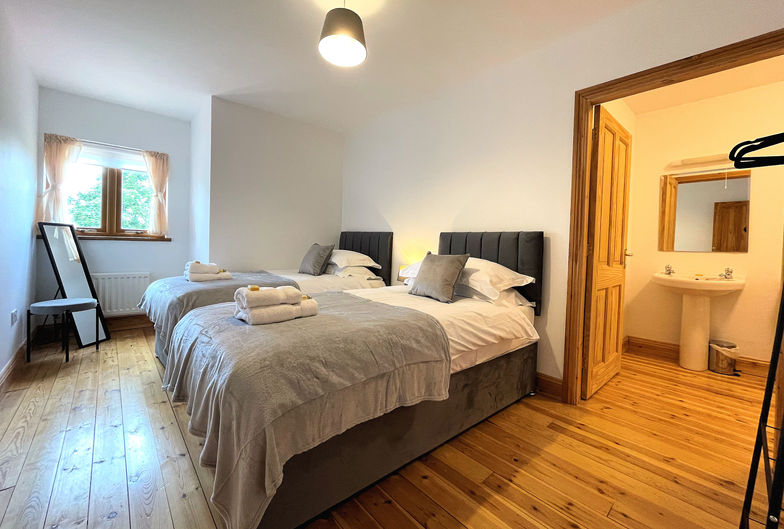 Bedroom 3:- Twin room with en-suite bathroom with bath & shower.